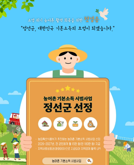 특히 선정된 지역 주민에게는 매달 15만 원 상당의 지역사랑상품권이 지급되며, 지역경제 활성화와 공동체 회복을 함께 노리는 실질적인 농촌형 기본소득 정책입니다.